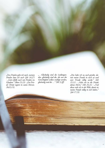 „Den Frieden gebe ich euch, meinen „…Glückselig sind die Leidtragen- „Dies habe ich zu euch geredet, da-