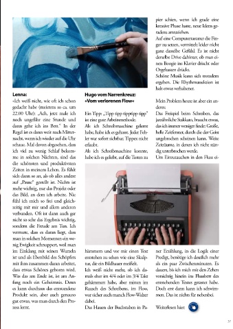es kann durchaus das entstandene Rausch des Schreibens, im Flow, Doch erst dann kann ich schwim-